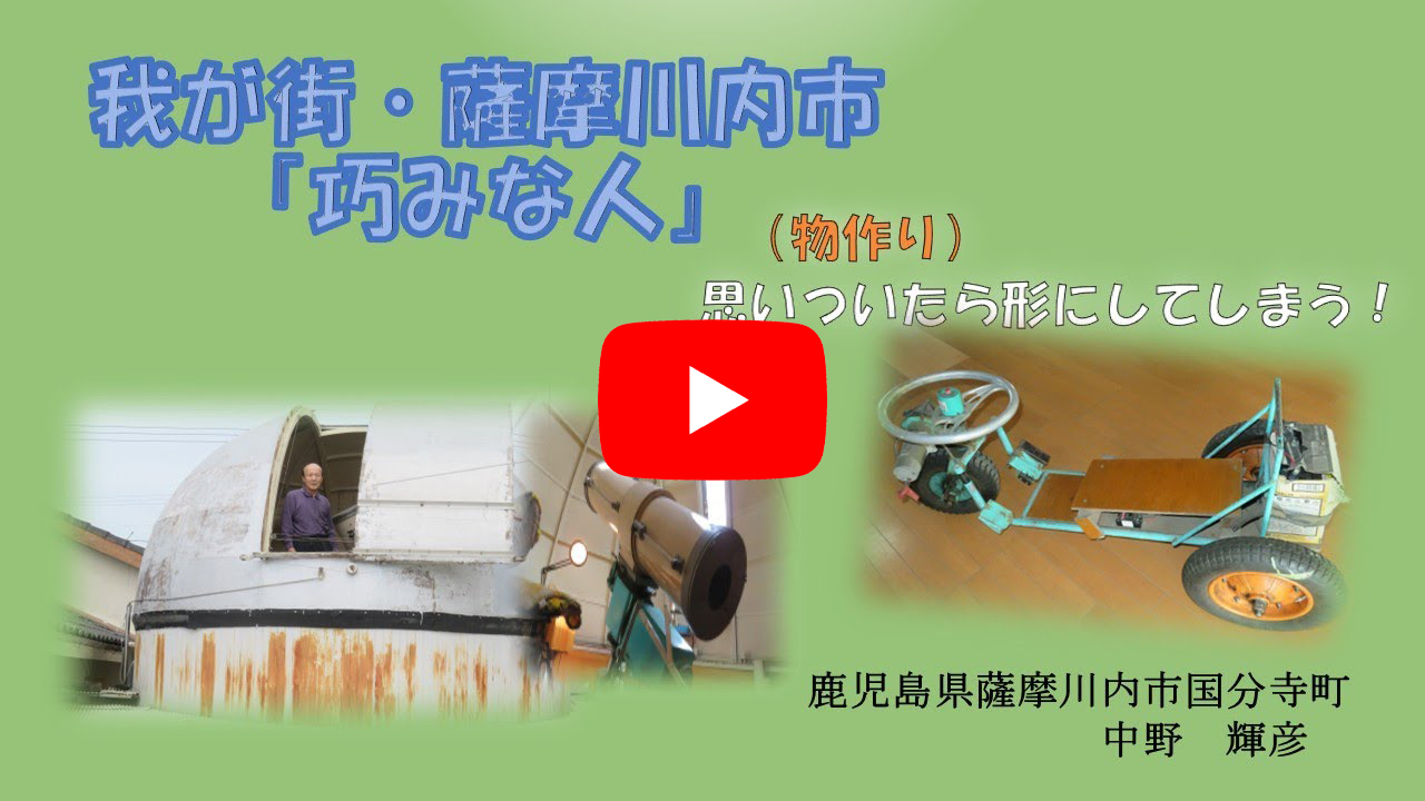 薩摩川内市わが街「巧みな人」素人趣味から、やるうちに段々技が高じて、誰よりかも秀でる人がおられ、その培った技を映像化し、誰にも広く知って頂き、後世に残したいと思います。